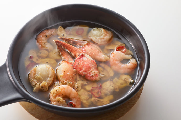 まるずわいがに×エビ×ホタテ×アサリ!贅沢アヒージョ