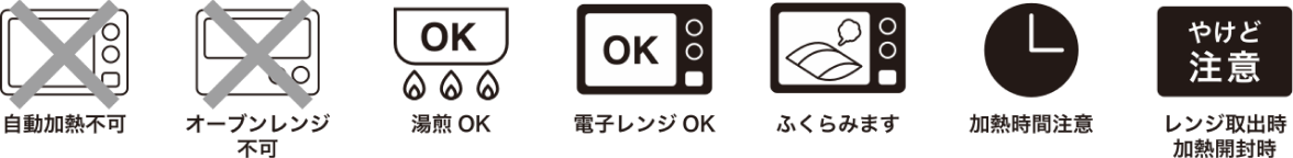 ・凍ったまま封を切らずに必ず蒸気口の面を上にしてお皿にのせ、500wの場合=3分(600wの場合=2分30秒)を目安に加熱してください。