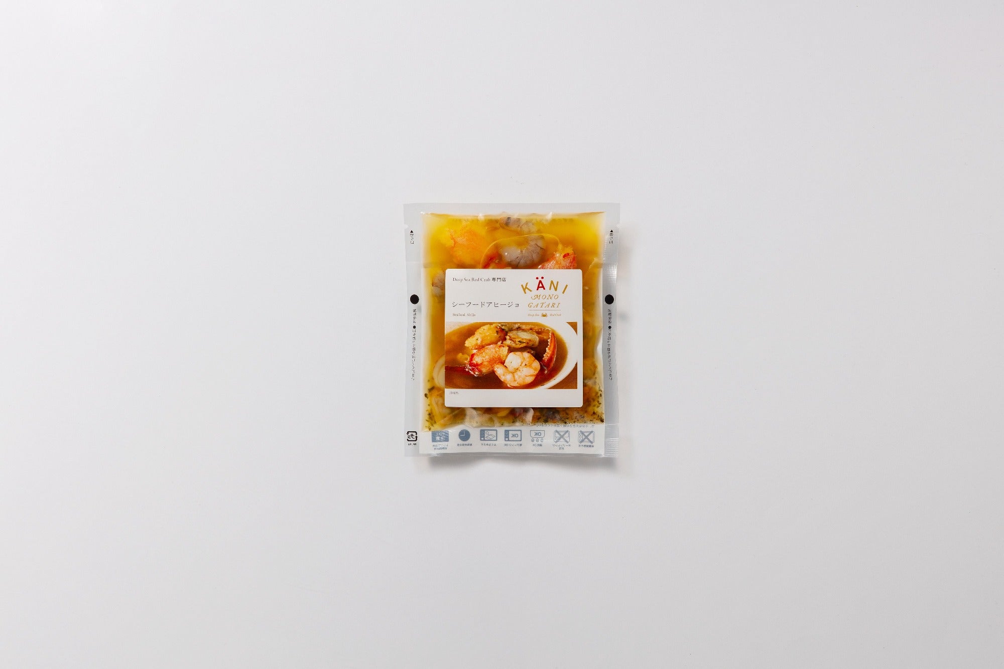 オリーブオイル(イタリア製造)、オオエンコウガニ(まるずわいがに(ナミビア産))、ホタテ(中国産、国産)、あさり、ブラックタイガーエビ、おろしにんにく、フライドガーリック、白ワイン、輪切り唐辛子、こんぶだし(風味原料(昆布エキス粉末、昆布粉末)、でん粉分解物、砂糖、酵母エキス粉末、でん粉、米油)、ブラックペッパー、乾燥パセリ、食塩/pH調整剤