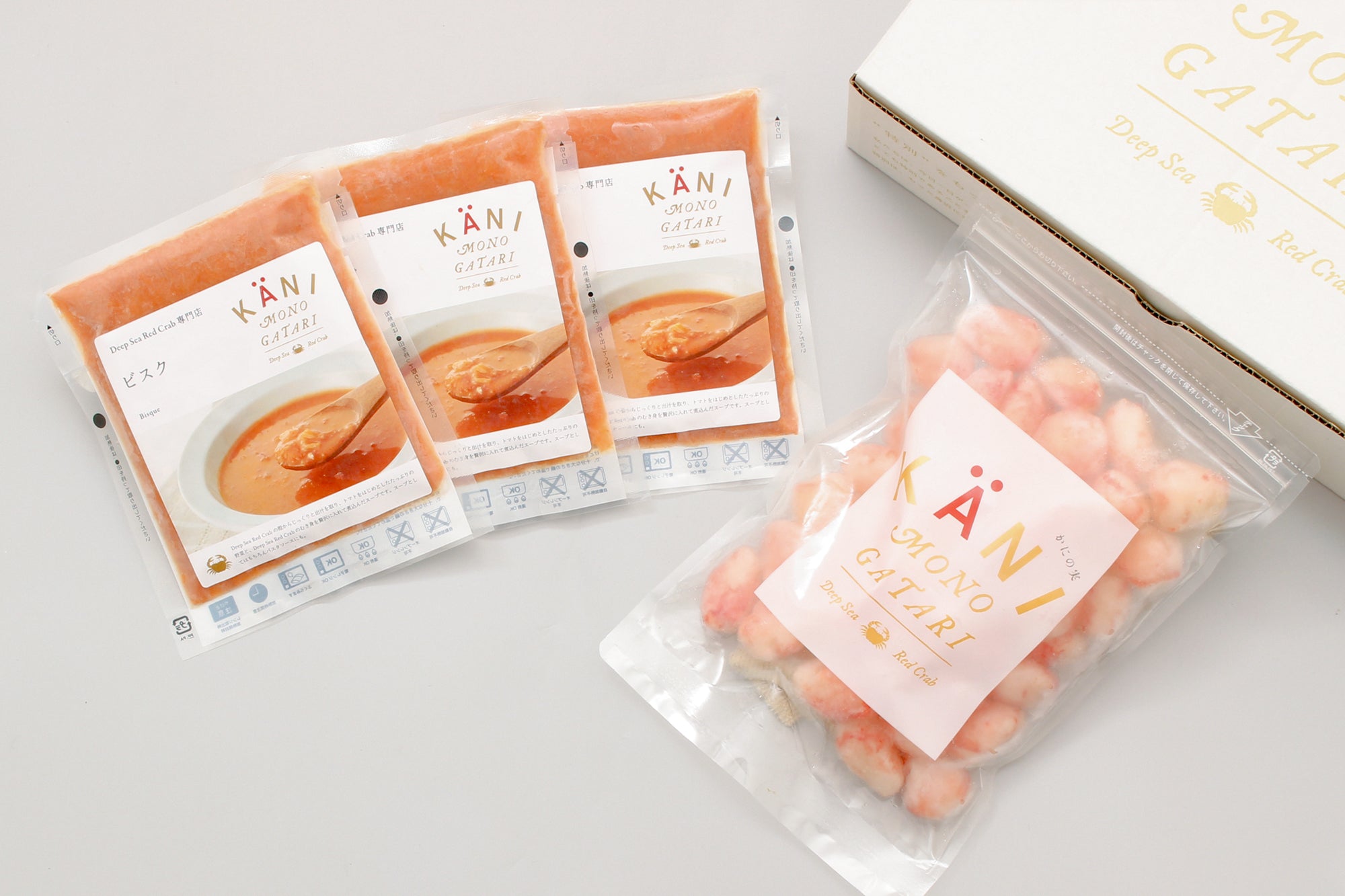 かにの実210g(総重量300g)×1、ビスク180g×3