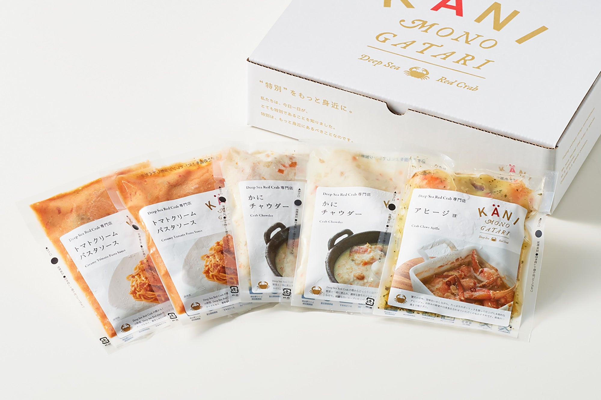 かに物語のむき身やスープなどの人気商品を中心に10種類14品が入ったセットです。