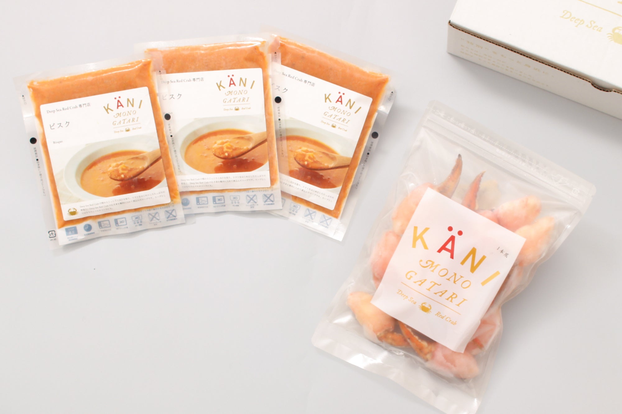 まるずわいがにの部位のなかでも、もっとも身がしまっているとされる蟹爪だけを集めました。一杯の蟹からわずか二つしか取れない、希少な部位です。さらに、人気No.1のまるずわいがにを贅沢に使用した特製ビスクをセットにしました。